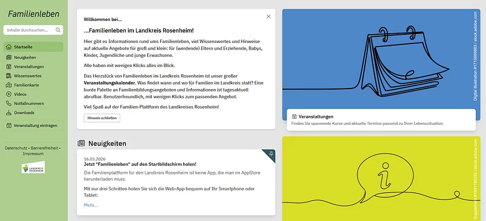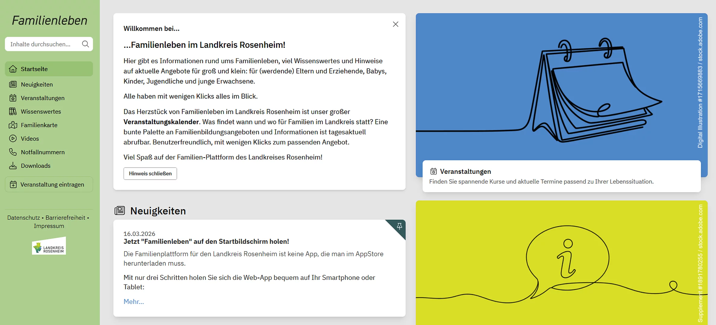 - einen Kalender für Familien-Veranstaltungen im ganzen Landkreis Rosenheim