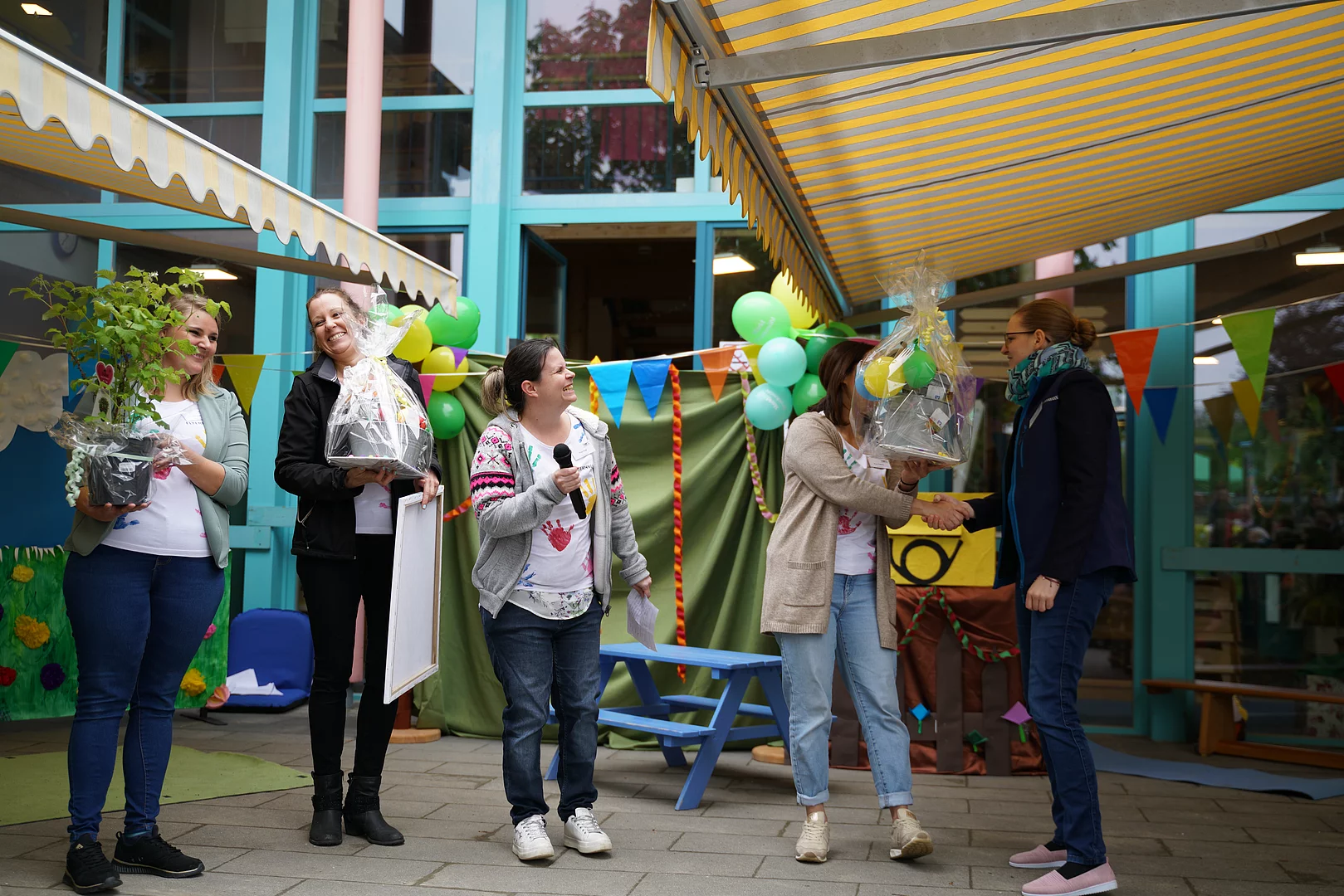 Zum Schluss sprach die Kita-Leitung Bernadette Schmid zu den Gästen des Jubiläumsfestes. Sie bezog sich auf die positive Redewendung – „Das ist eine runde Sache“ denn in der Kindervilla Kunterbunt ist alles eine runde Sache – einzigartige, herzliche Kinder, eine engagierte Elternschaft, ein Team das zusammenhält und einen Träger, die Marktgemeinde Bruckmühl, der in allen Belangen unterstützt und beisteht. Ebenso dankte Schmid allen Mitwirkenden, ihrem Team, im Besondern ihrer stellvertretende Leitung Sabrina Stephan, dem Elternbeirat, den Rentnern, den Nachbarn und den Kindervilla-Kindern, sie überreichte hier auch kleine Geschenke.