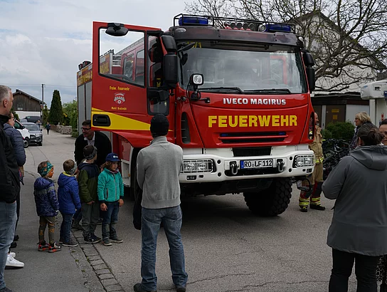 Auch die Feuerwehr Bruckmühl machte eine Bewegungsfahrt mit dem großen Feuerwehrauto und kam zu Besuch. Das brachte viele Kinderaugen zum Leuchten, danke auch hierfür. Als einzigartigen Abschluss dieses wunderschönen und ereignisreichen Tages machten alle Kinder und Gäste einen großen Tanz-Flashmob. Dieser Tanz zum Lied „Ein Hoch auf uns“ von Andreas Burani wird jedes Jahr am letzten Kindergartentag vor den Ferien mit den Kindern getanzt. Dieser tänzerische Gänsehautmoment am Jubiläum wird allen noch lange in Erinnerung bleiben! Nun bleibt nur zu Wünschen – auf die nächsten dreißig Jahre sollen sie immer kunterbunt sein!