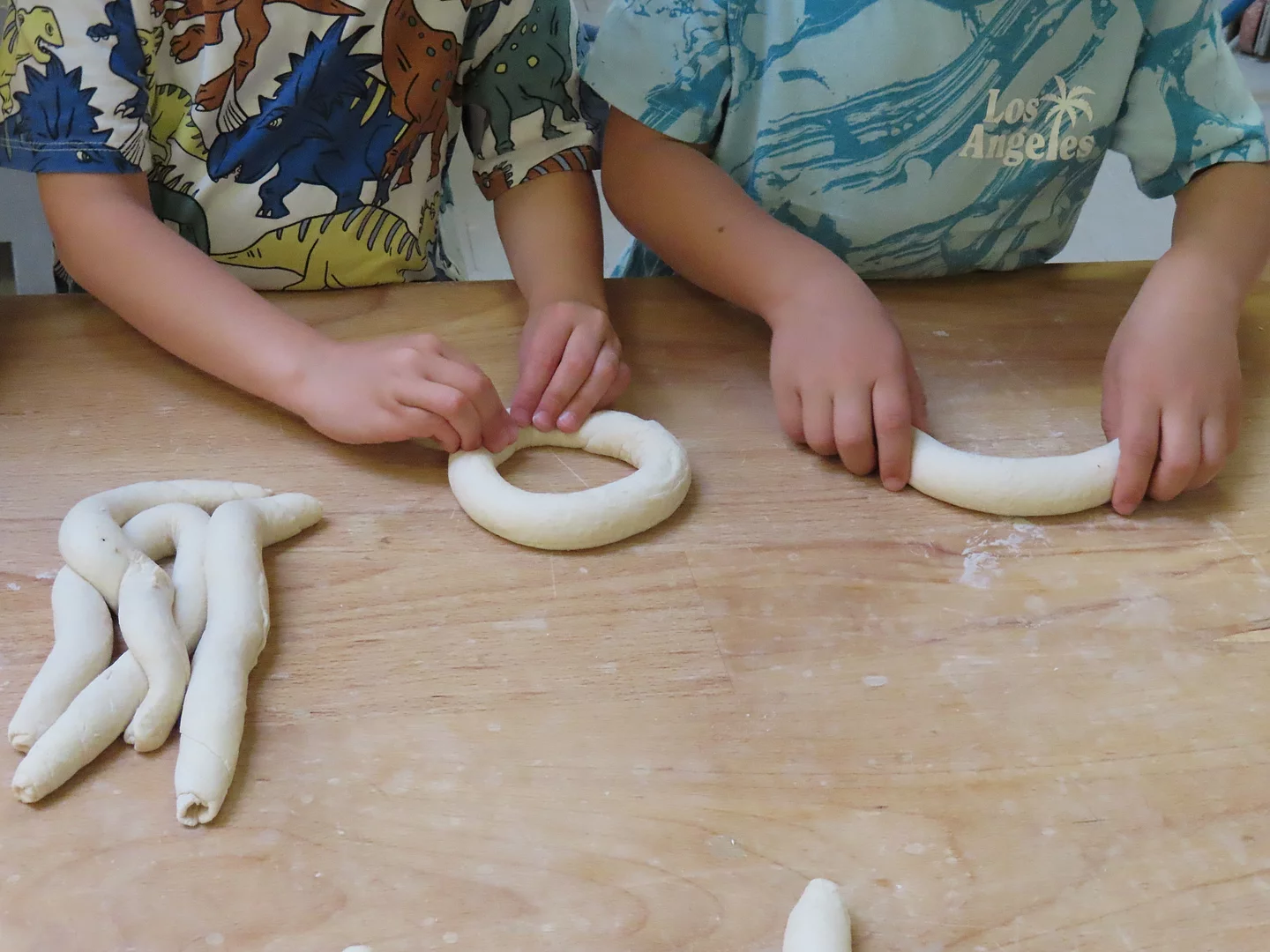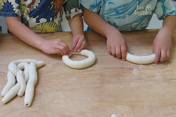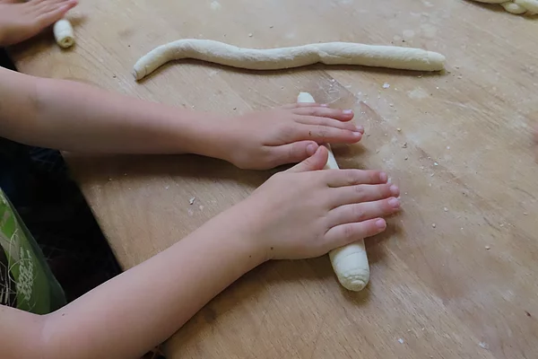 Mai 2024 Die Dinogruppe durfte im Mai einen tollen Ausflug machen. Es ging zu Fuß bis zur "Hofbäckerei Steingraber" in Vagen. Dort angekommen durften die Kinder mit Begeisterung, die Bäckerei besichtigen, den Teig kneten, selbst Brezen drehen & Semmeln formen und den riesigen Ofen der Bäckerei betrachten, indem ihre selbstgemachten Teigwaren gebacken wurden. Anschließend maschierten alle zum nahegelegenen Spielplatz, hier wurden mit den selbst gebackenen und sehr leckeren Brezen/Semmeln Brotzeit gemacht. Später kamen unsere "Elterntaxis", diese brachten die Kinder wieder zurück zum Kindergarten. Ein wunderschöner, spannender und lehrreicher Ausflug für die Dinokinder!