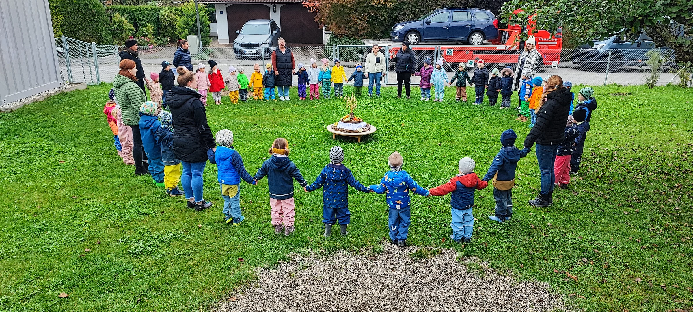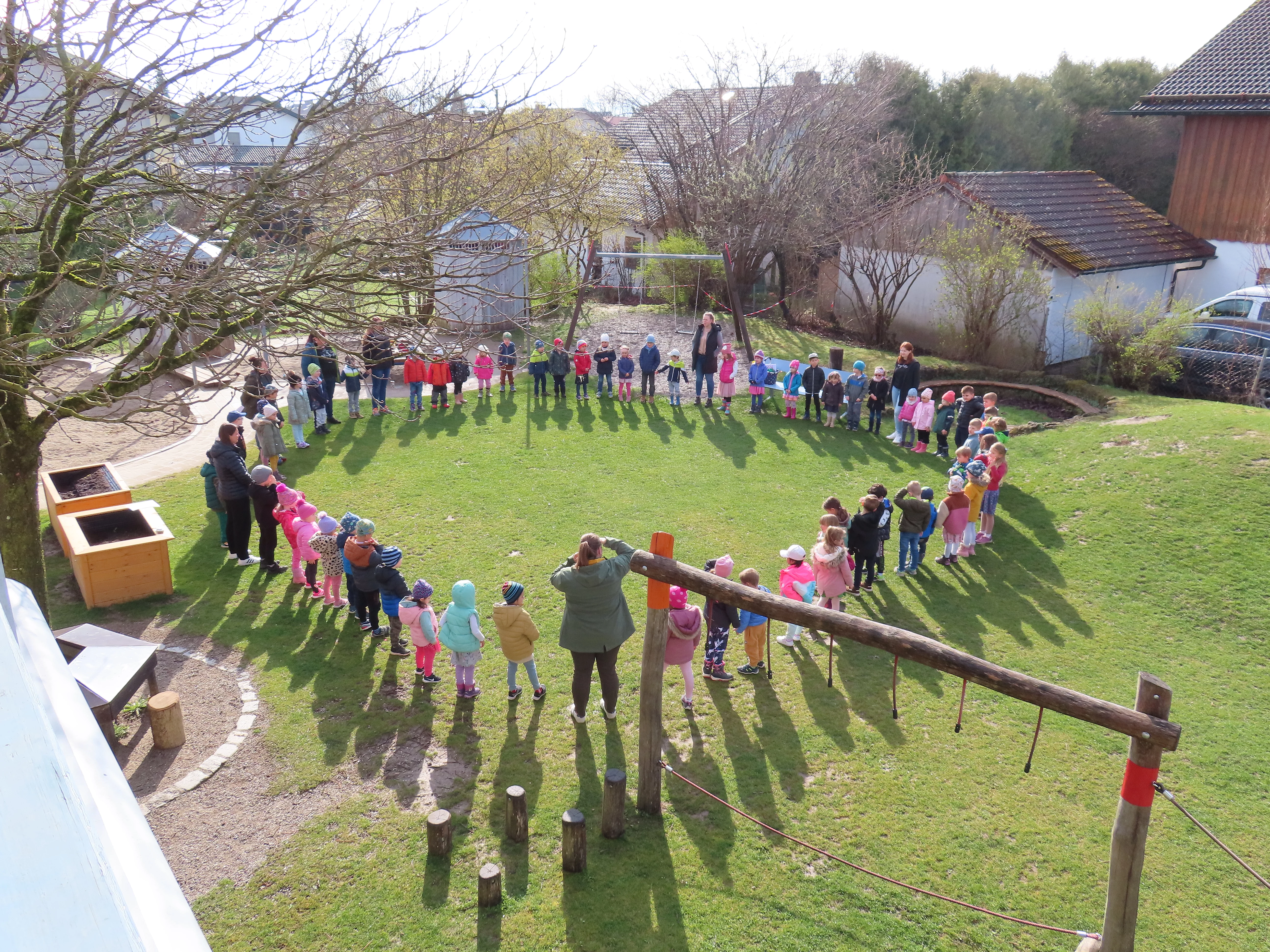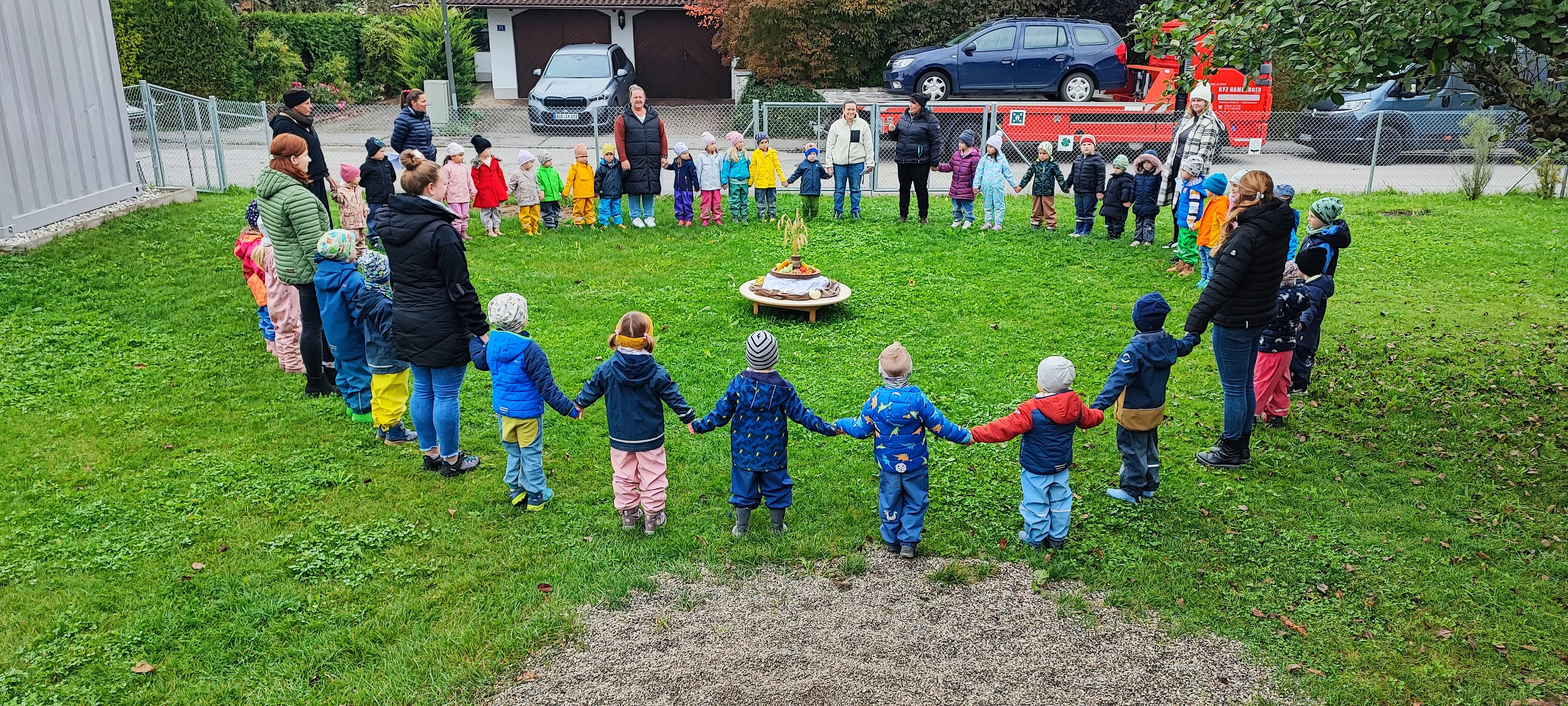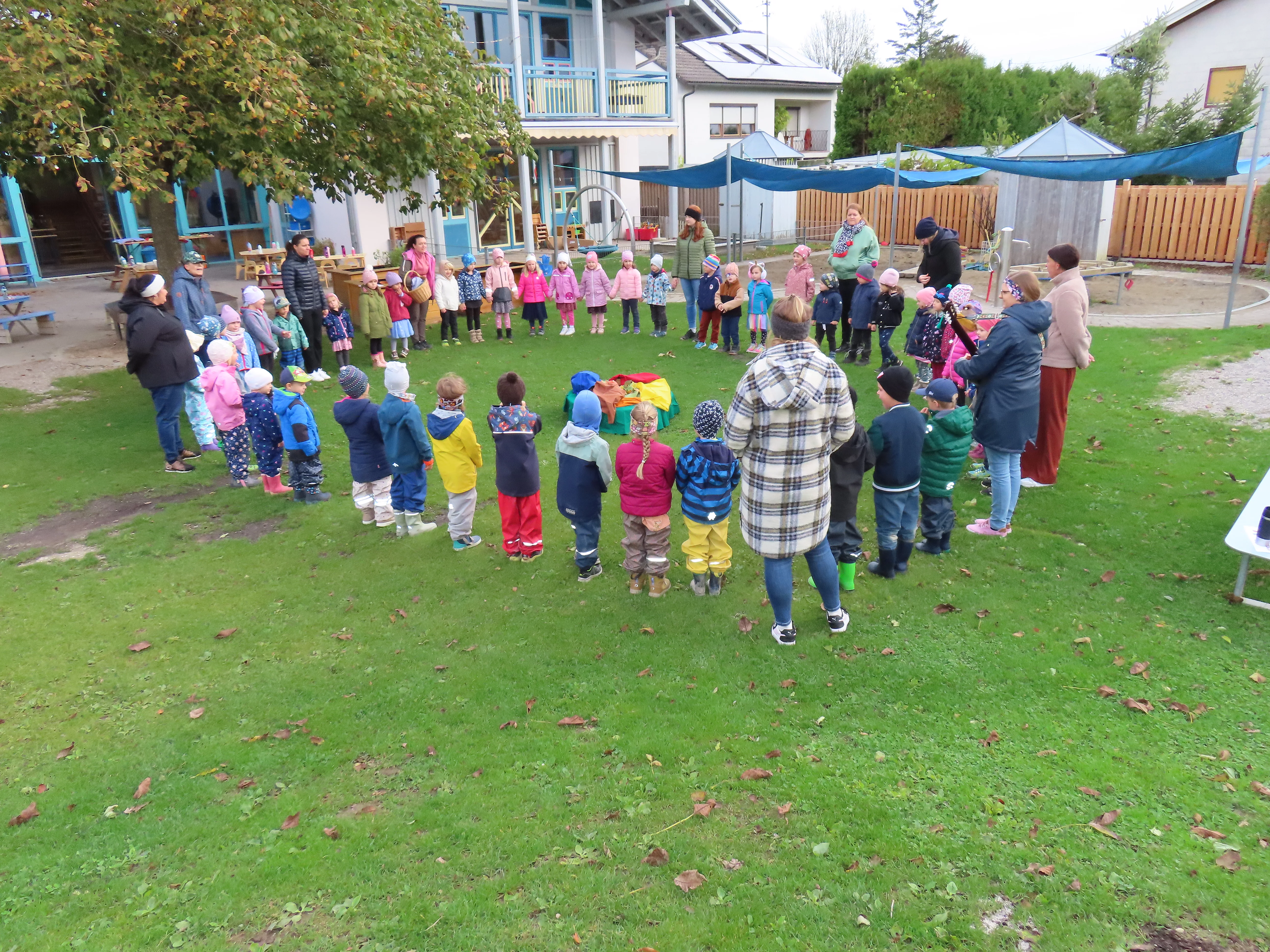 Am Vormittag versammelten sich alle Kindergartenkinder der Kindervilla im Garten in einem großen Kreis.