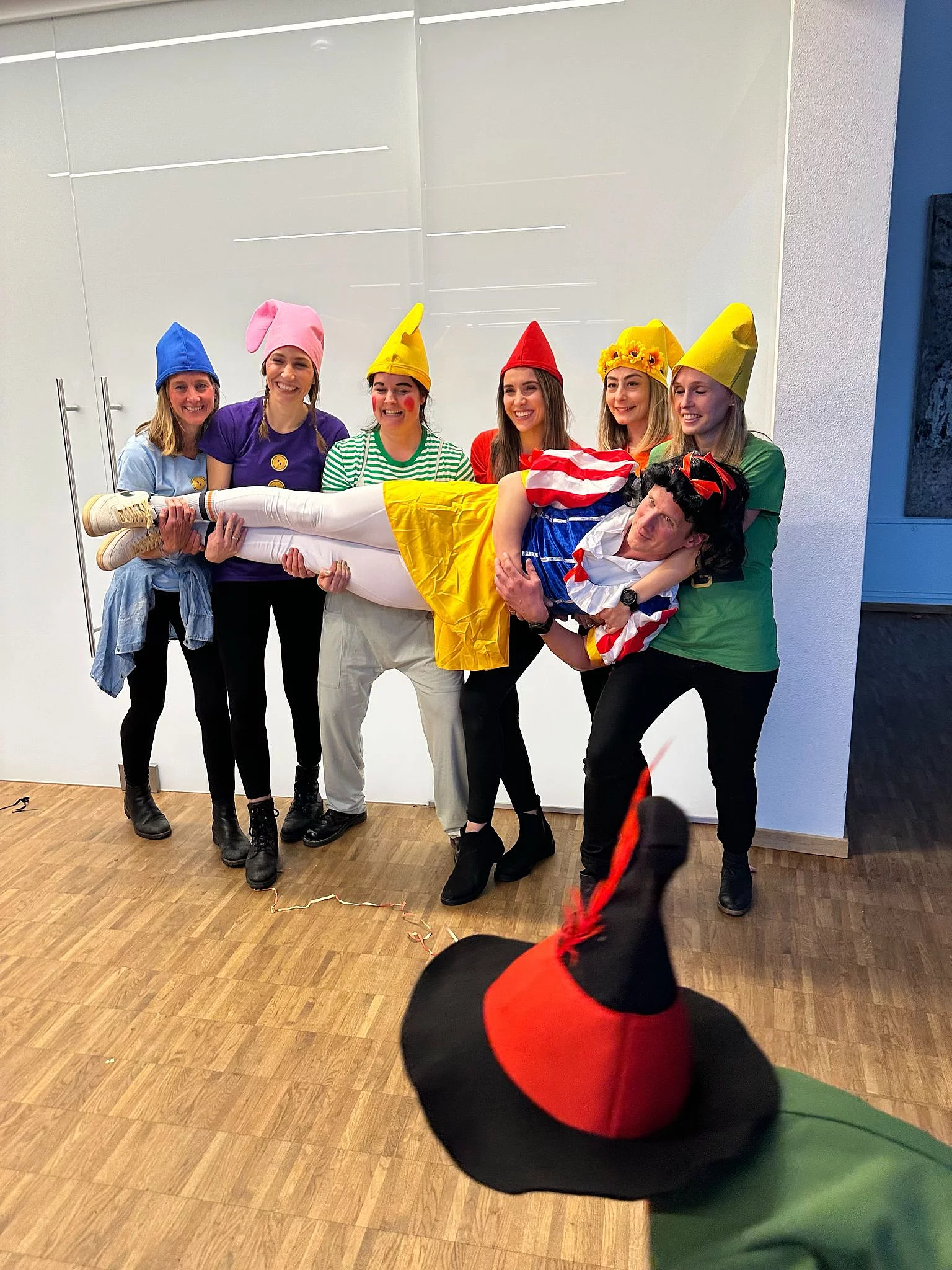 Groß und Klein kamen in tollen und sehr einfallsreichen Kostümen zur Party. Die Elternbeiräte selbst waren als "Schneewittchen mit den sieben Zwergen" verkleidet. Unser Elternbeirats-Vorsitzender Sebastian Hetz war hierbei das Schneewittchen und alle Damen unseres Elternbeirates die Zwerge.