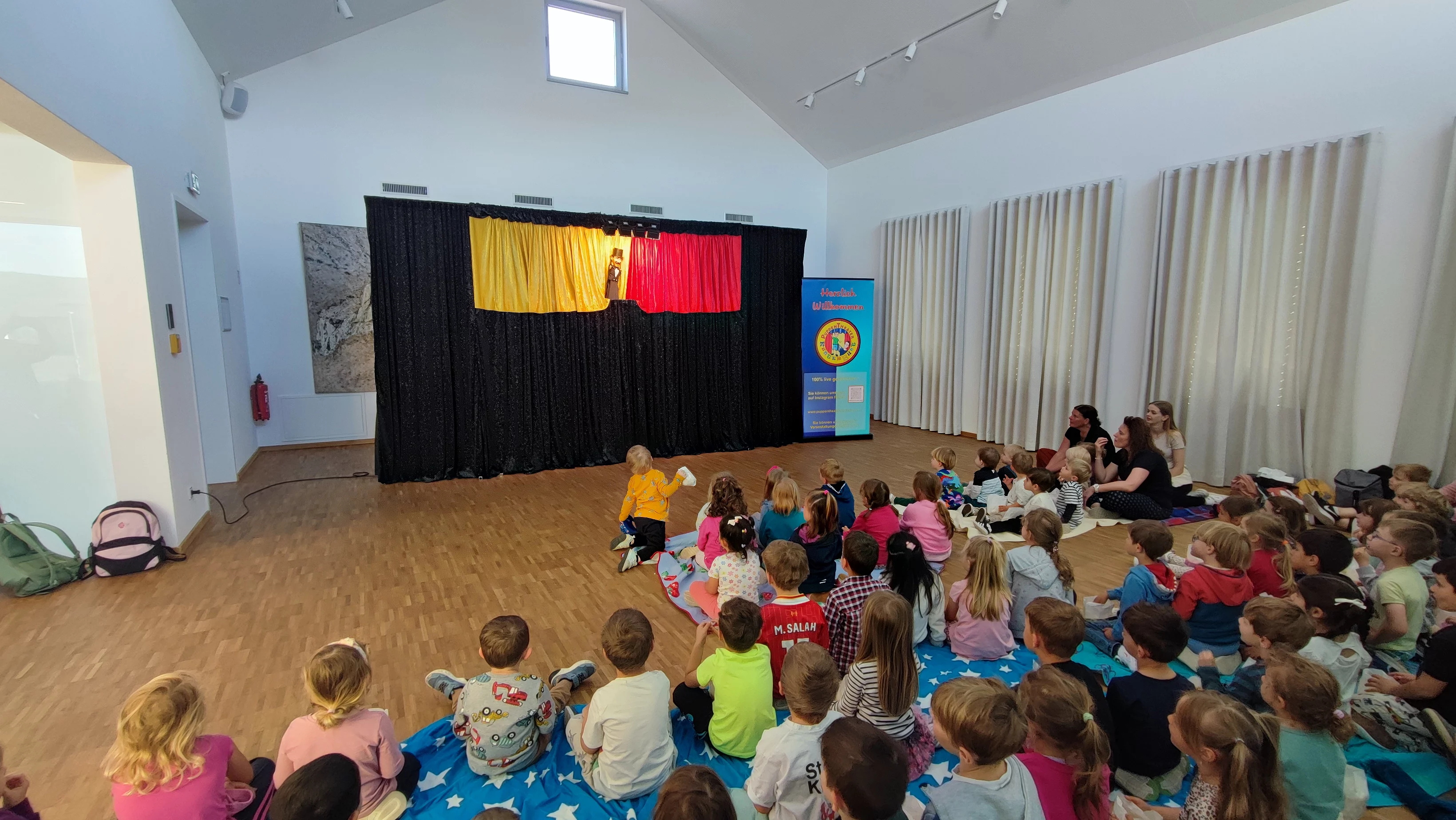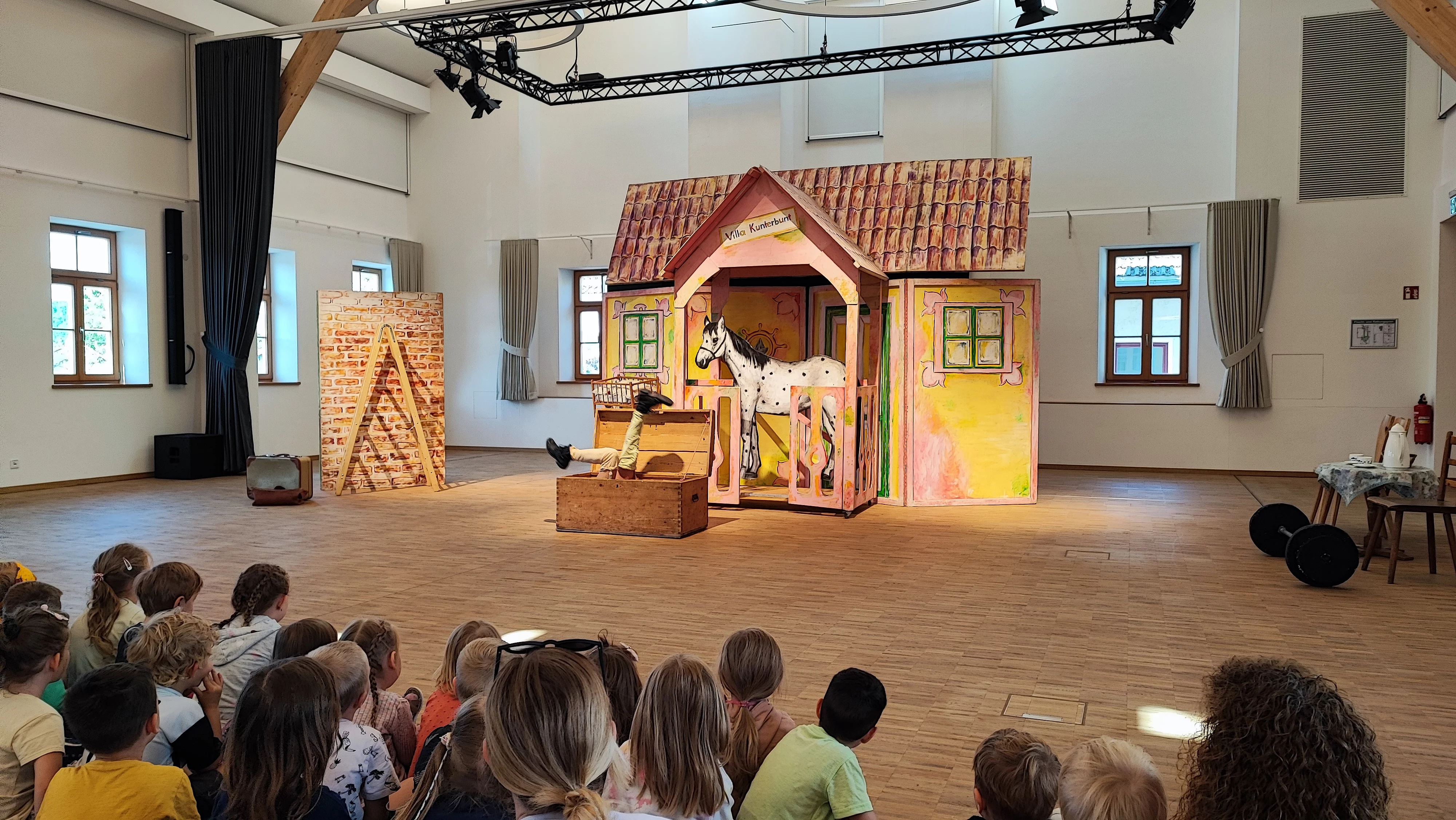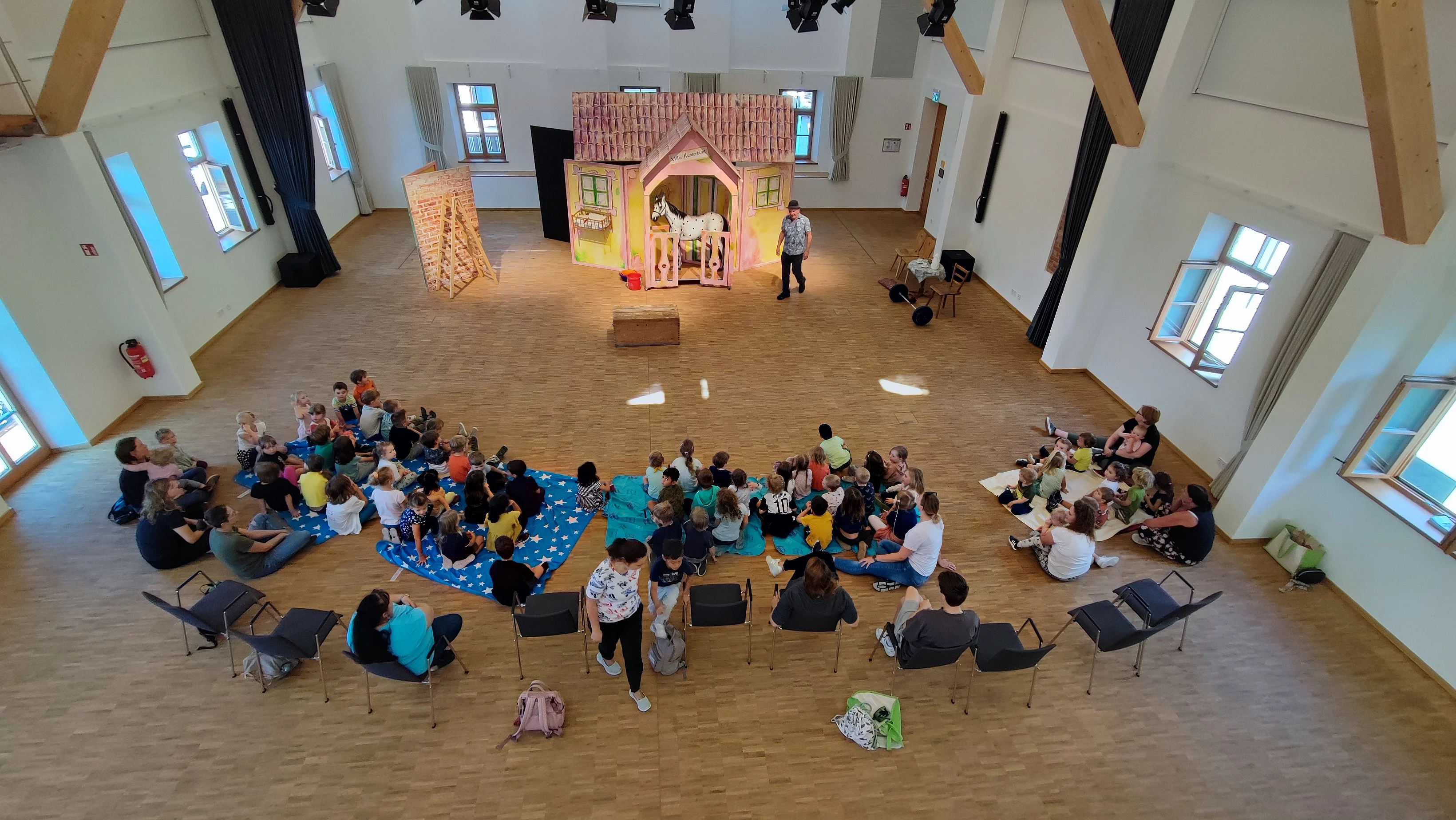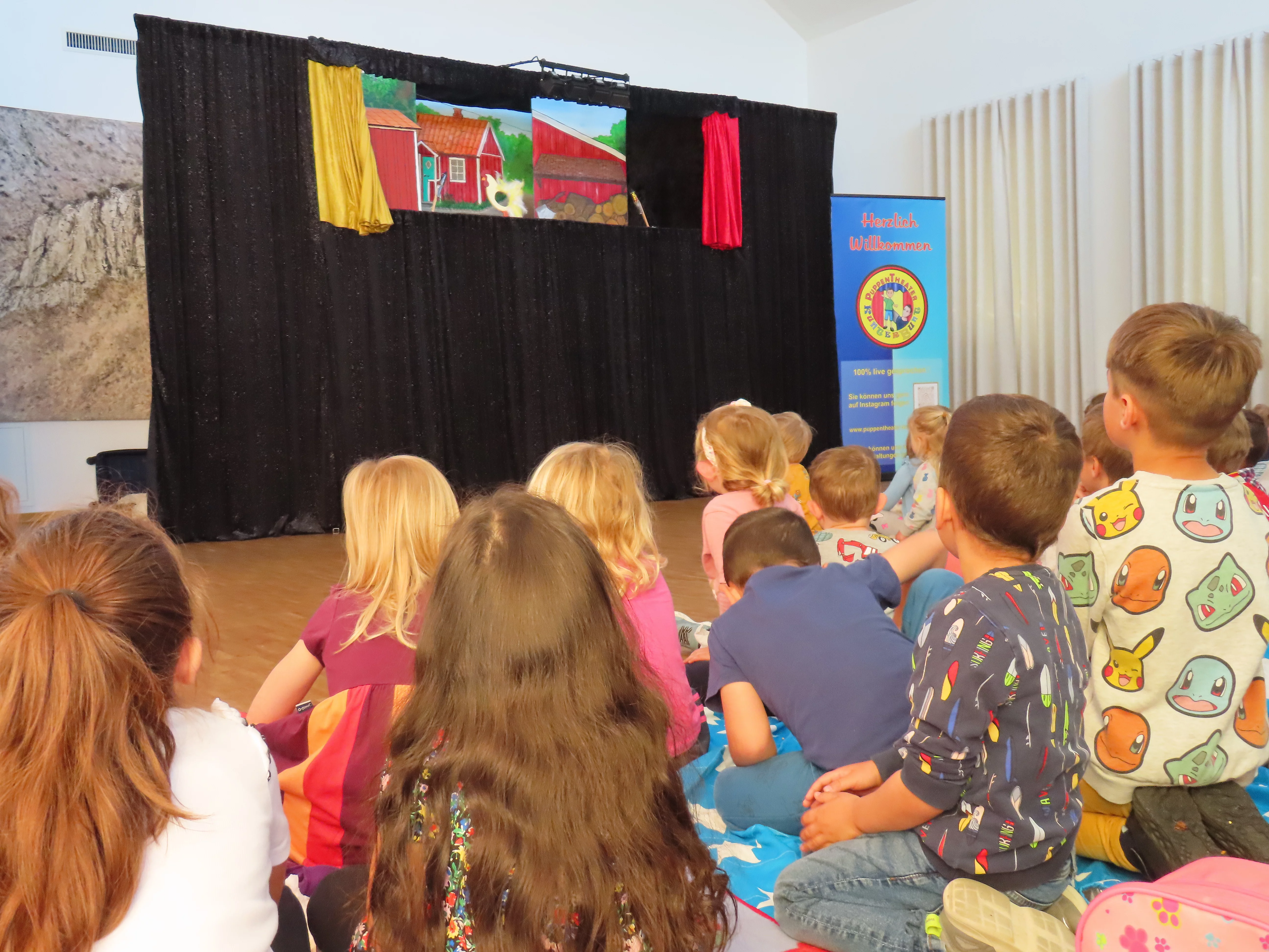 Mai 2025 Alle Kindervilla-Kinder durften ins Theater. Unser Elternbeirat hat im Namen der Elternschaft die erwirtschafteten Spenden aus dem Kuchenverkauf am Wahlsonntag verwendet, um das "Kunterbunte Puppentheater" aus Egglham in die Kulturmühle Bruckmühl einzuladen.