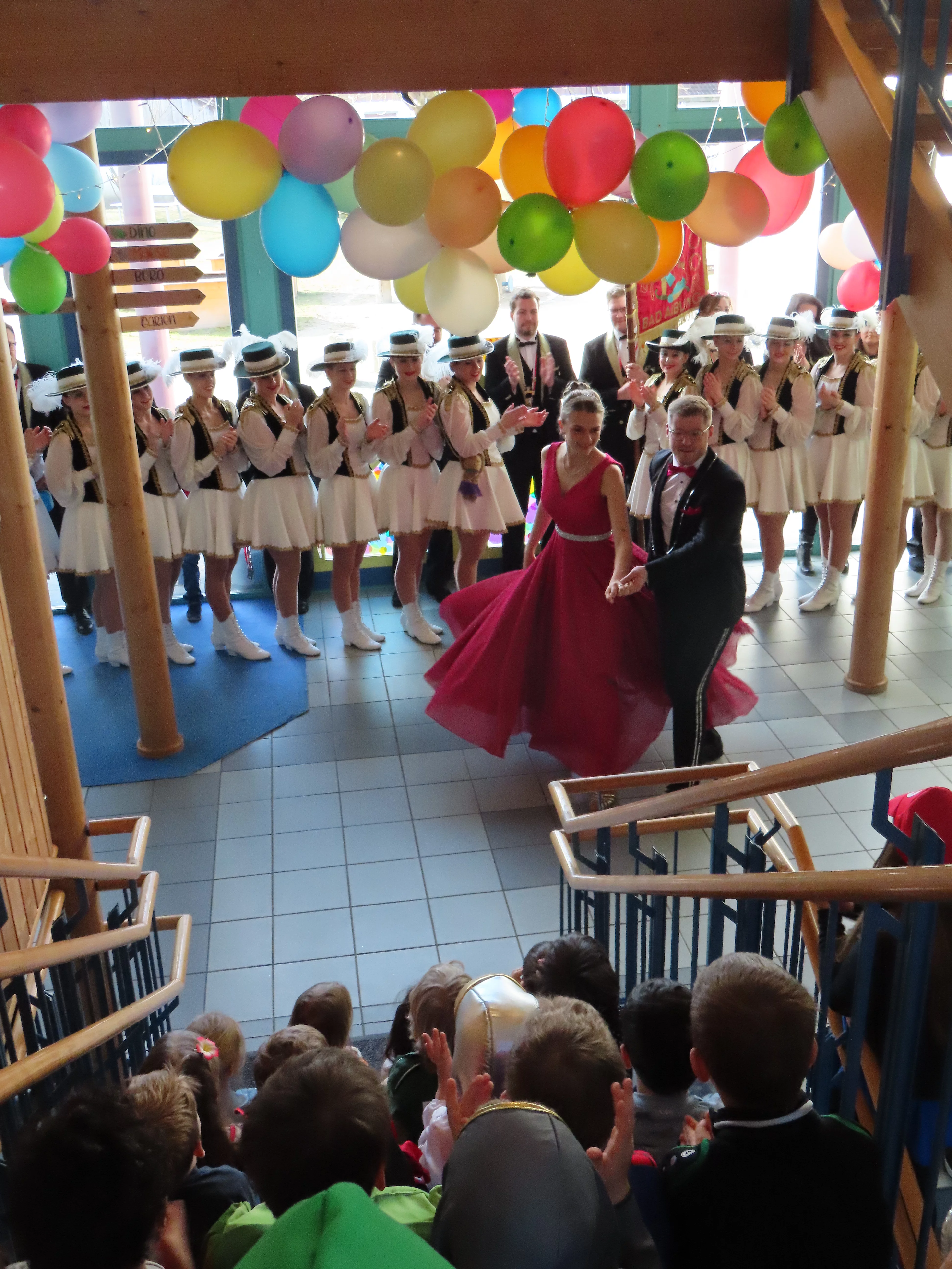 Es wurde gejubelt und geklatscht. Die Kinder, aber vor allem die Mädchen, waren von der Prinzessin begeistert. Sowohl Prinzenpaar als auch Garde tanzten für uns und dann gab es für alle noch Süßigkeiten und Autogrammkarten. Es war ein besonderer Tag, der mit Tanz und Musik um 12.00 Uhr ausklang.
