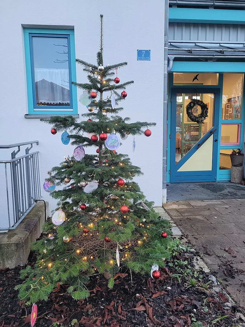 Die Kinder und Familien werden jeden Morgen mit besinnlicher Musik und einem schön beleuchteten Eingangsbereich begrüßt, auch alle Nachbarn und Bruckmühler sehen täglich unser geschmücktes, leuchtendes Tannenbäumchen vor der Kindervilla.