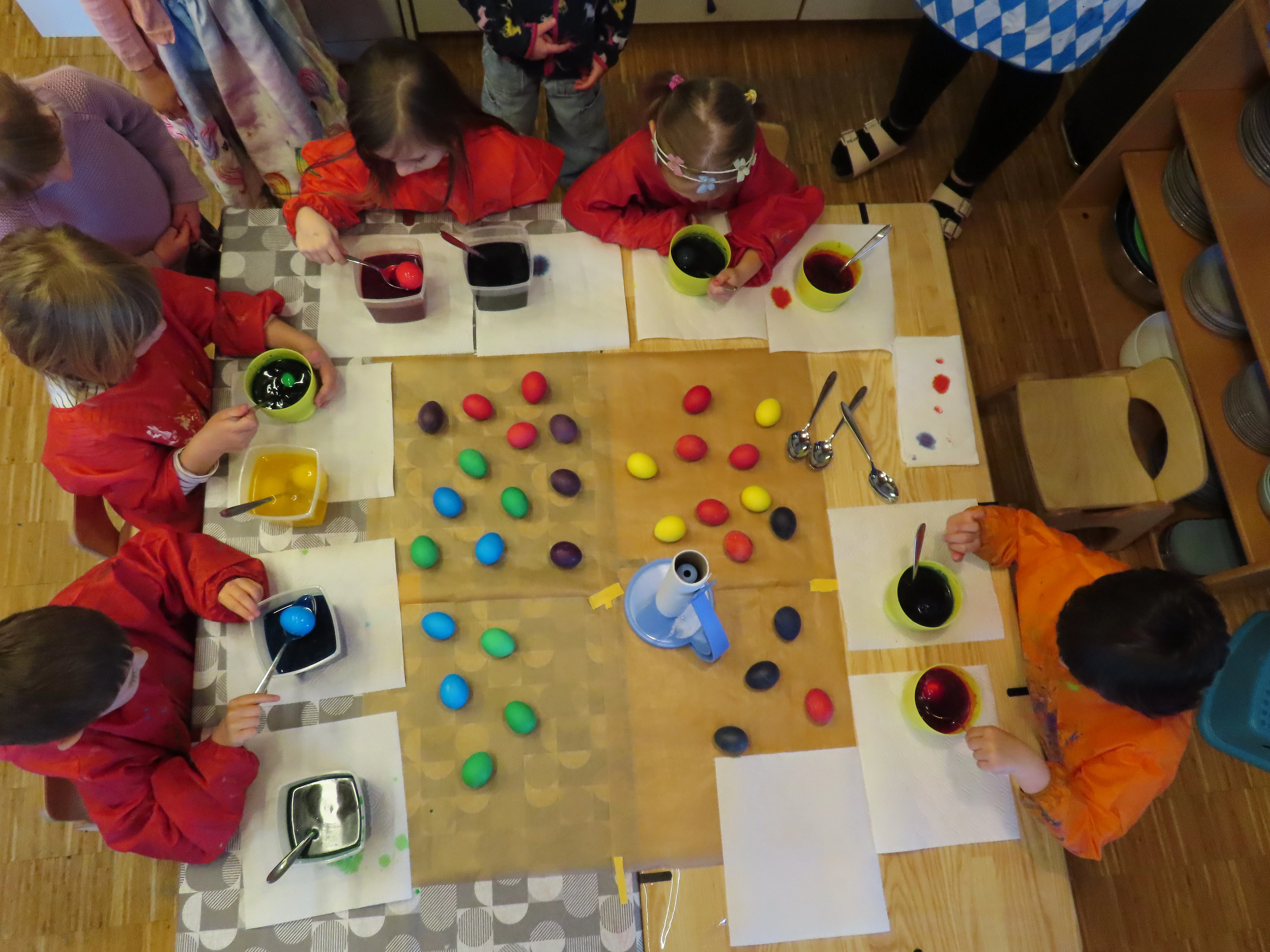 Im Anschluss gab es in allen Gruppen noch ein großes Osterfrühstück mit vielen leckeren Sachen, wie gefärbte Eier, Hasenbrezen und Gemüse.