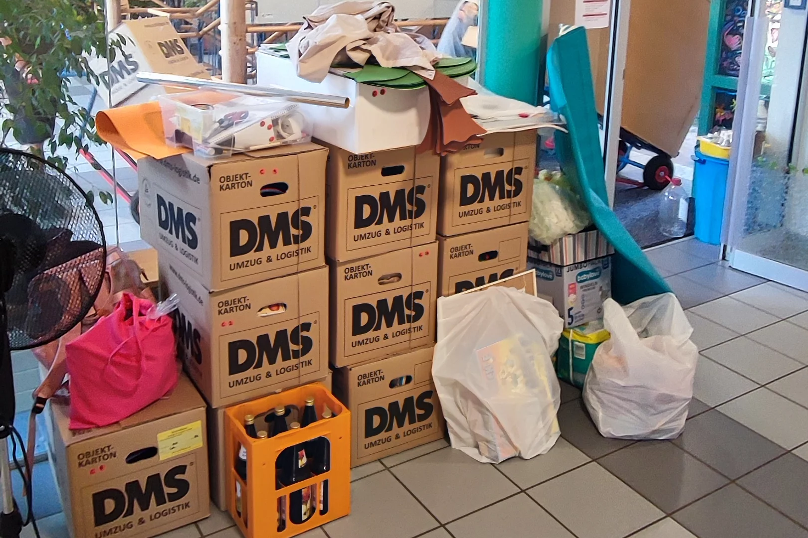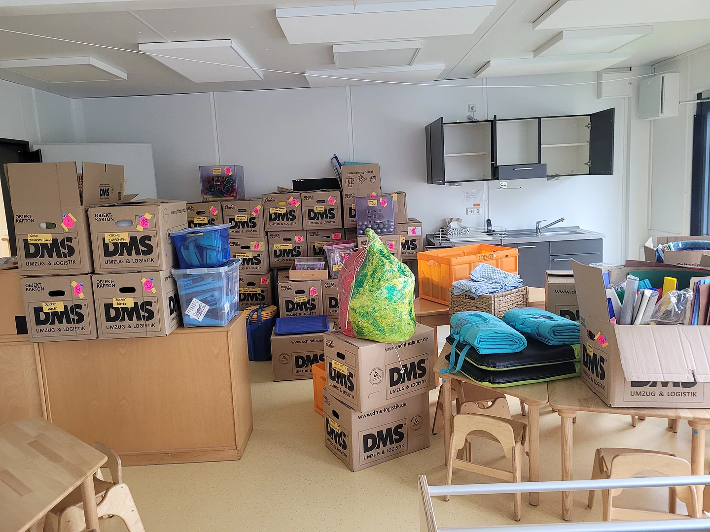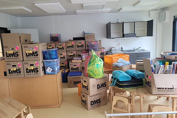 August 2025 Die Vorbereitungen für den Umzug sind im vollen Gange. Im wahrsten Sinne des Wortes, denn die Gänge sind voll mit Umzugskartons und die Sperrmüllcontainer füllen sich immer mehr mit dem "ausgemisteten" Material.