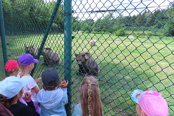 Viele Tiere, darunter Rehe, Ziegen und Meerschweinchen, konnten gefüttert und auch gestreichelt werden. Die Kinder sahen viele verschiedene Wildtiere, wie z.B. Wölfe, Bären, Wildschweine, einen Luchs und viele mehr.